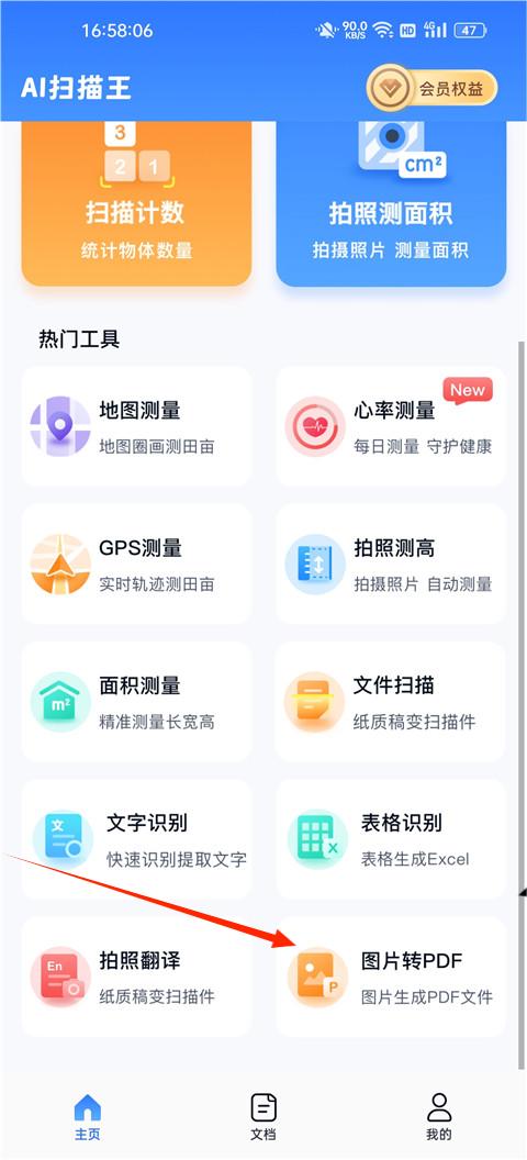 1、打開軟件,可以看到軟件有眾多的功能,像地圖測量、測試高度、測量面積、圖片轉pdf等