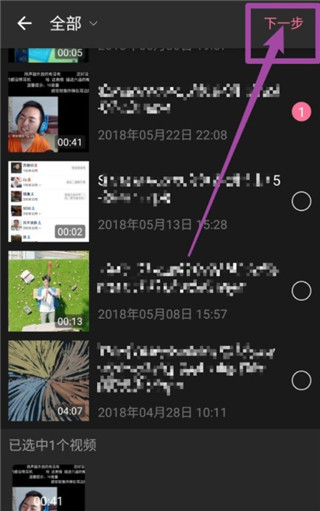 4、選擇你要上傳的視頻,點擊右上角的【下一步】。