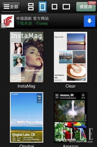 3、該功能非常強(qiáng)大,您還可以在圖片中添加各種有趣的元素,首先選擇模板,然后選擇照片