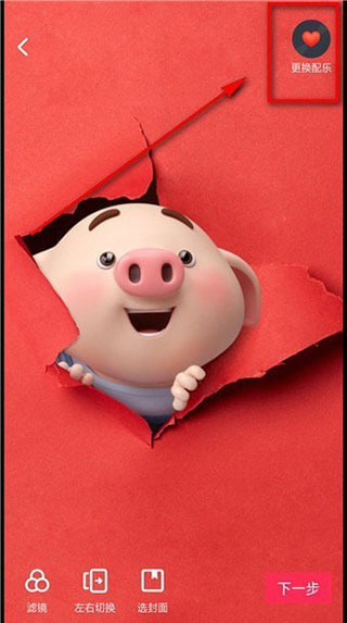 6、我們可以看到右上方就有一個(gè)更好配樂(lè)的圖標(biāo),點(diǎn)擊【更換配樂(lè)】;