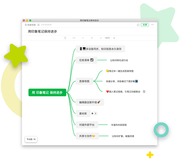 6、全新思維導(dǎo)圖功能也完美兼容了印象筆記原有的歷史功能,支持夜間模式、筆記歷史版本、一鍵分享…你愛用的功能一直都在。