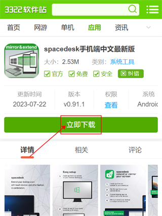 2、手機(jī)端也要下載spacedesk的APP,點(diǎn)擊下載即可