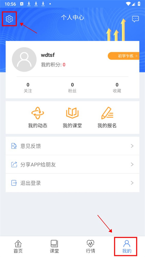 1、進入深交所期權(quán)app,在我的頁面中點擊左上角的設(shè)置;