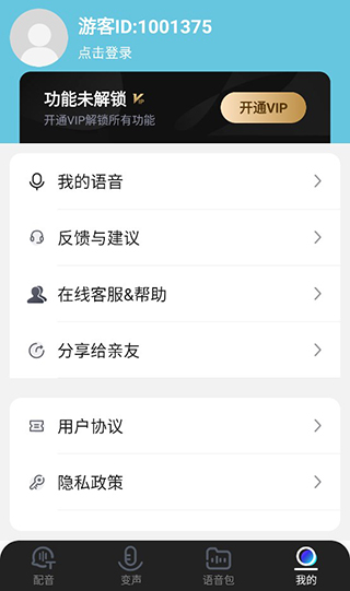 用戶點擊我的即可進入個人中心,可以查看自己的信息和錄制的語音。