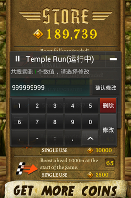 不然修改不成功的!!比如神廟逃亡就可以輸入9個左右的 9 , 多了就不行了 !! 根據游戲來定!!