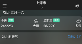 3、每小時(shí)的天氣預(yù)報(bào)用于實(shí)時(shí)監(jiān)測(cè)多云、晴、雨、雪和空氣質(zhì)量。
