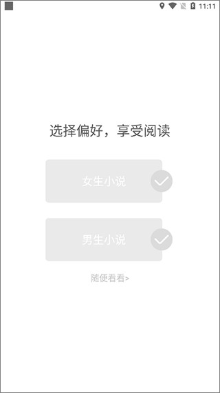 1、下載安裝進(jìn)入樹莓閱讀會(huì)先詢問用戶偏好;