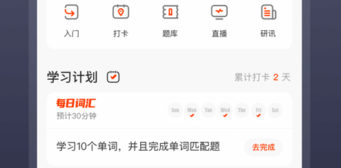 2、每天都可以在平臺(tái)上學(xué)習(xí)打卡,養(yǎng)成堅(jiān)持學(xué)習(xí)的好習(xí)慣。