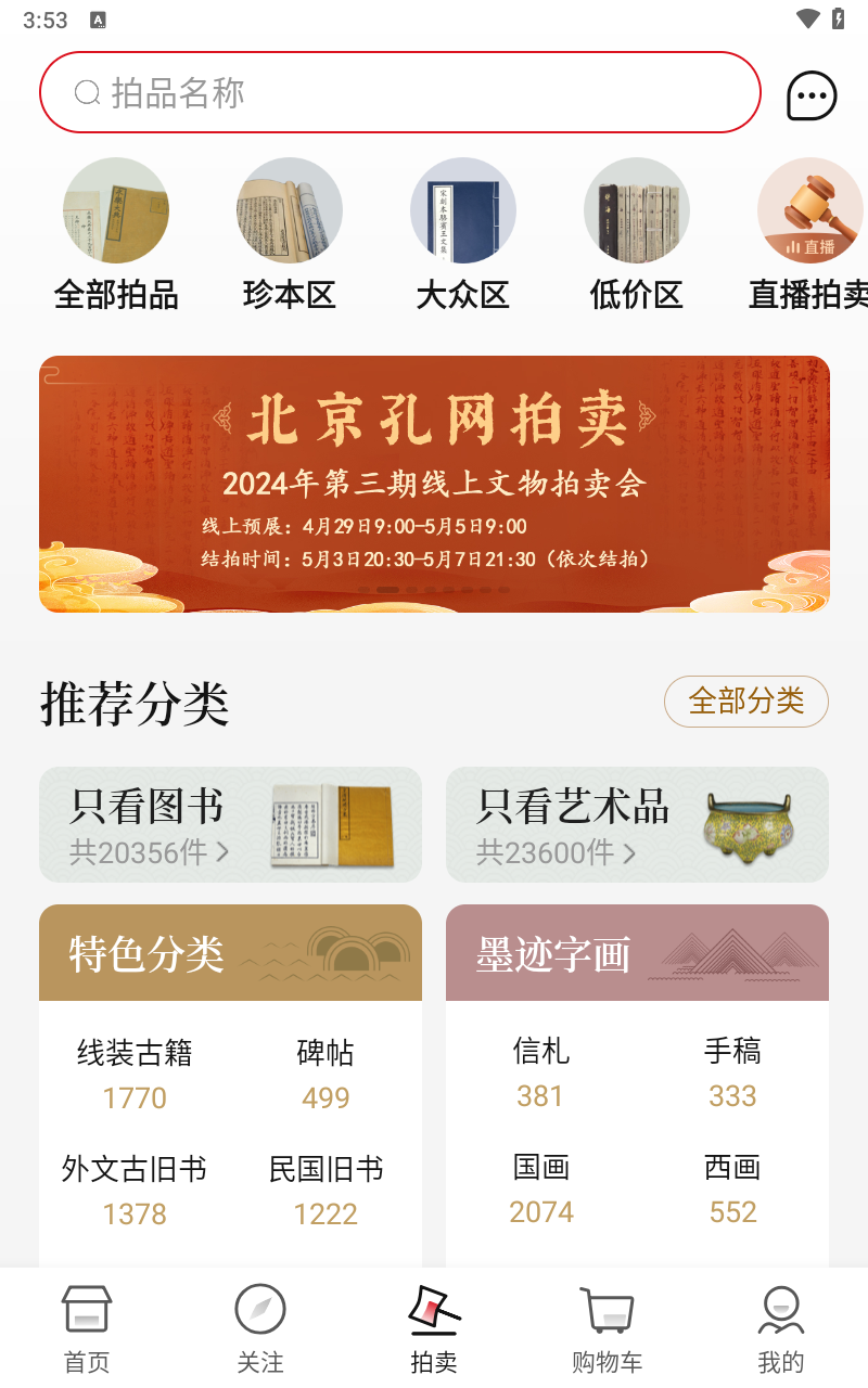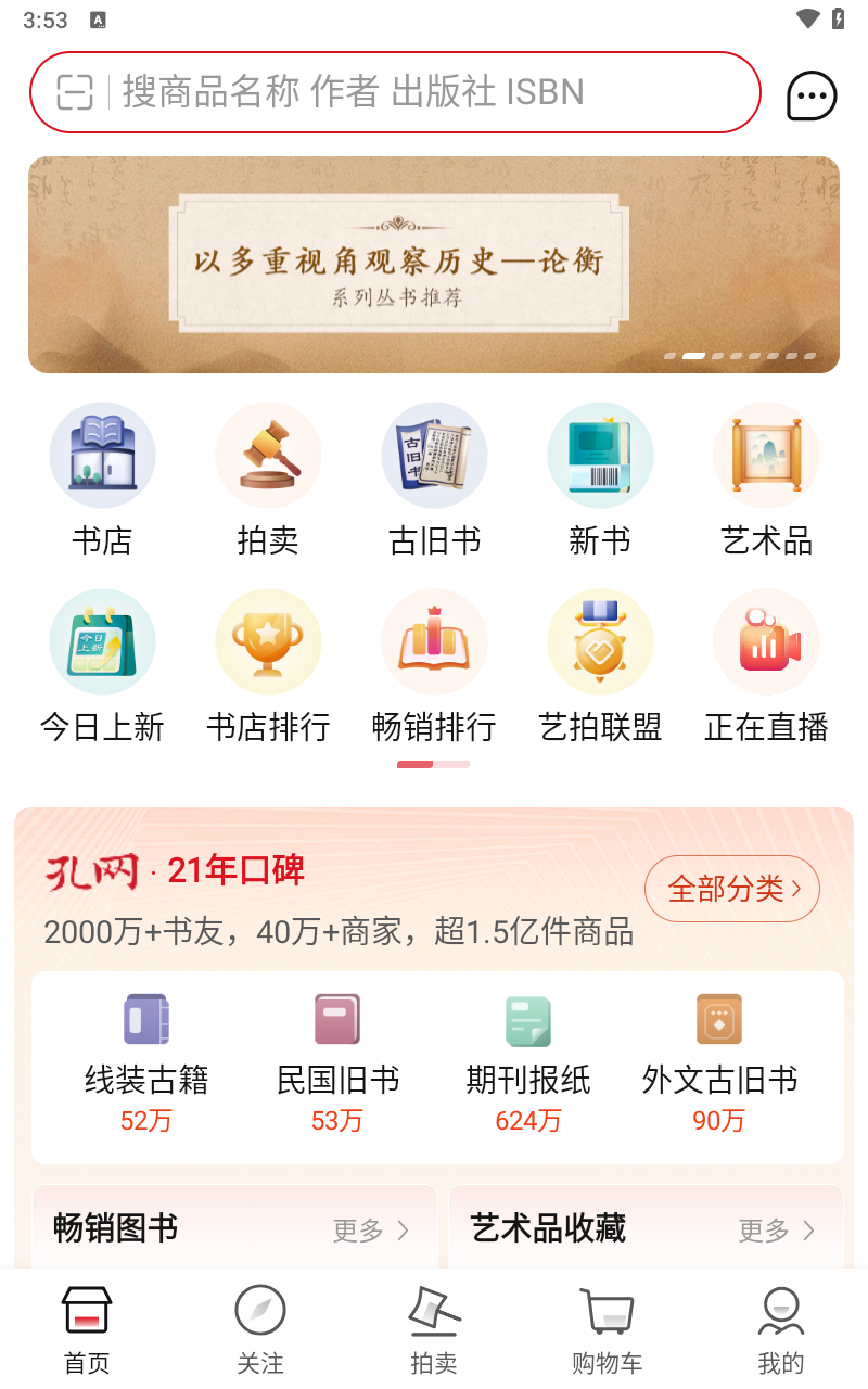 2、競(jìng)拍:實(shí)時(shí)參與拍賣(mài)競(jìng)價(jià),低價(jià)起拍,滿(mǎn)足不同層次的購(gòu)書(shū)、收藏需求