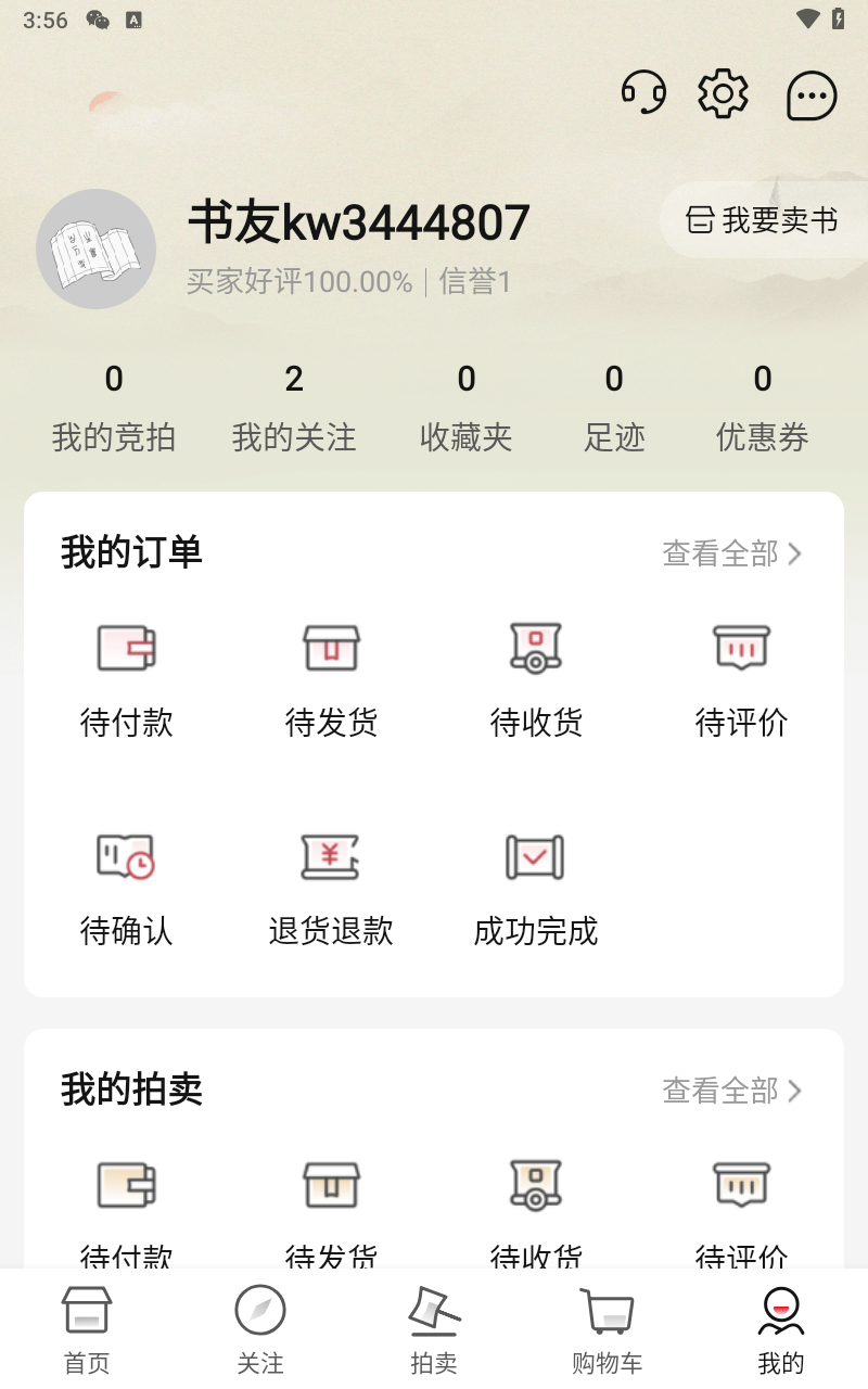 1、現(xiàn)在想要賣(mài)舊書(shū)的話(huà),大家需要點(diǎn)擊孔夫子舊書(shū)網(wǎng)軟件的右下角按鈕,從而進(jìn)入到個(gè)人中心選擇“賣(mài)家中心”功能(如下所示)。