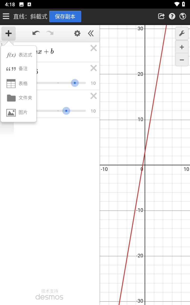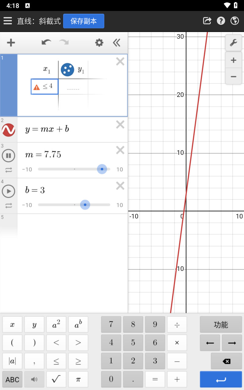 極坐標圖,笛卡爾,或參數(shù)圖。在同一時間,你可以在一次圖上有多少個表達式,也沒有限制,甚至不需要在Y =窗體中輸入表達式!滑塊調(diào)整值交互建立直覺,或任何動畫參數(shù)可視化的圖形效果。請鍵入y = mx + B和添加滑塊開始。