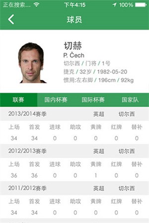 4、之后會(huì)顯示該球隊(duì)的球員列表。如果想查看單一球員的詳細(xì)數(shù)據(jù),就點(diǎn)擊這個(gè)球員的名字(以切赫為例)。