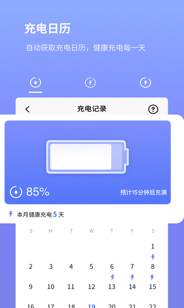 充電日歷實(shí)時(shí)記錄,展示電量變化趨勢(shì)圖,健康充電陪伴你身邊