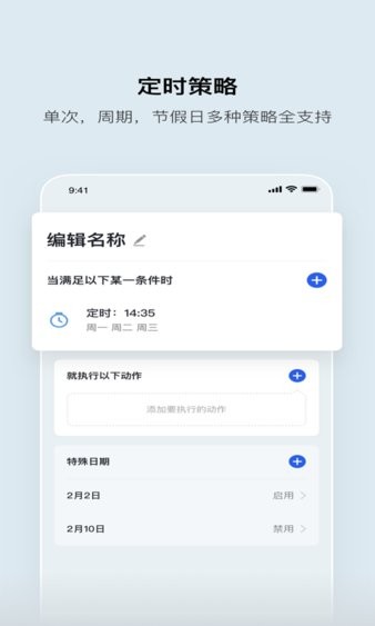 1.還可以自定義計(jì)時(shí)策略,單次、周期、節(jié)假日等,支持多種不同的計(jì)時(shí)策略
