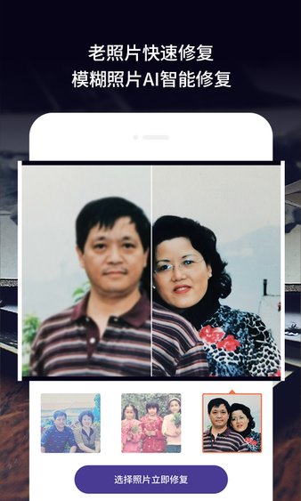 老舊照片修復(fù)應(yīng)用 是用于修復(fù)舊照片的應(yīng)用程序,軟件可以幫助用戶快速掃描照片,通過智能AI識別功能,協(xié)助用戶還原圖片。軟件能夠根據(jù)不同景物和顏色進行判斷,使復(fù)原率高達90%以上。
