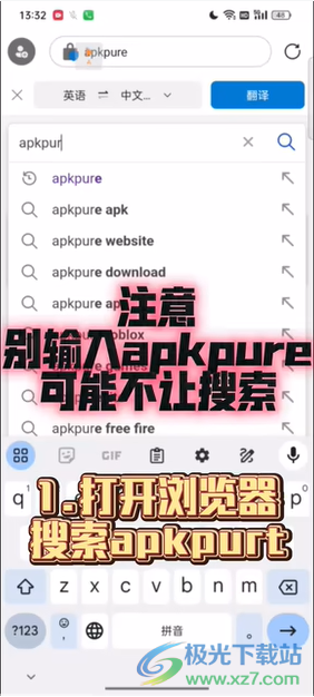 2、打開瀏覽器搜索apkpurt,這里注意別輸入apkpure,可能不讓搜索。