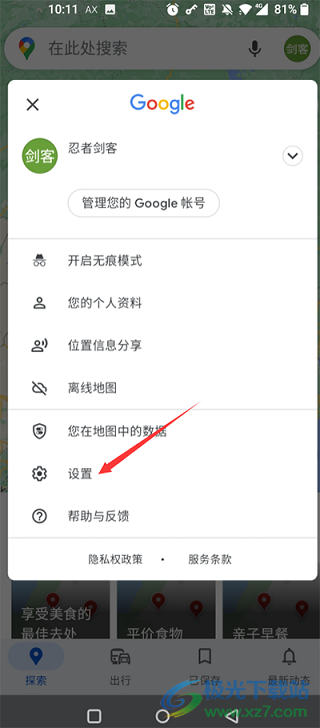 1. 首先需要在手機中開啟谷歌地圖應(yīng)用,進入主界面后,需點擊右上角的頭像圖標(biāo)。