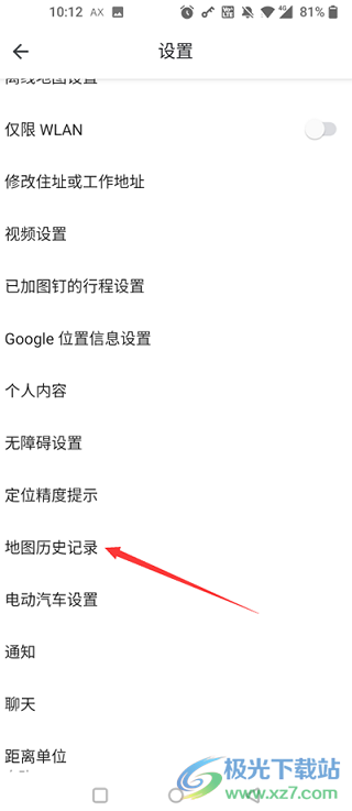 3、點擊一下就會來到“設(shè)置”窗口中,找到并點擊列表中的“地圖歷史記錄”。