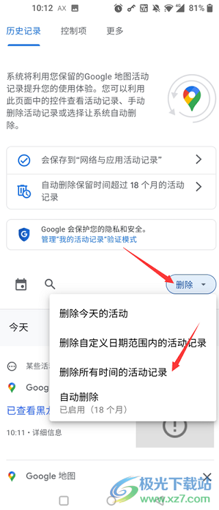 4、然后在打開的“歷史記錄”界面中,點擊其中的“刪除”按鈕,最后在給出的列表中,根據(jù)需求進行選擇刪除就可以了。