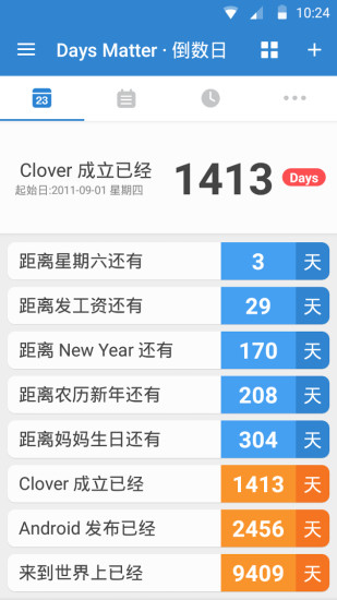 倒數(shù)日應(yīng)用是一款幫助記錄生活中重要日子的小工具。是否曾因女友突然問起你們相戀多久而措手不及?是否擔(dān)心在關(guān)鍵時刻忘記她的生日?是否好奇下次世界杯還有多久開始?或者想了解自己敷面膜持續(xù)了多久?這款小工具正是你所需要的。