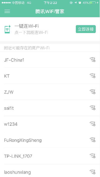 首先,打開騰訊wifi管家,界面如圖所示。點(diǎn)擊下圖當(dāng)中的“立即連接”。