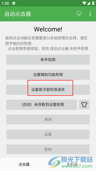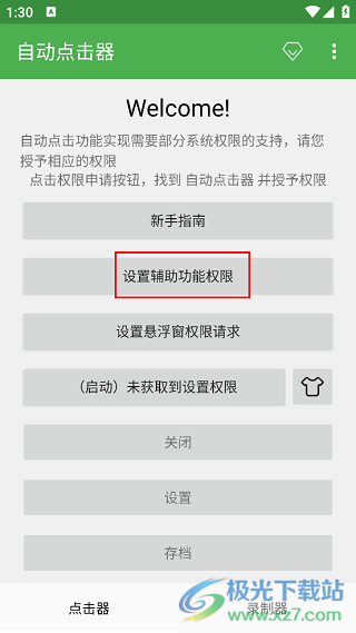 1. 首先在本站下載并安裝軟件,進(jìn)入主頁(yè)面后,需點(diǎn)擊“輔助功能權(quán)限設(shè)置”選項(xiàng)。
