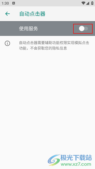 1、打開自動(dòng)點(diǎn)擊器APP,可以看到此時(shí)“啟動(dòng)”這一項(xiàng)是灰色的,無(wú)法打開,我們需要給它設(shè)置權(quán)限。