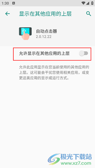 6、來(lái)到新的界面之后,將“允許顯示在其他應(yīng)用的上層”右側(cè)的開關(guān)按鈕開啟。