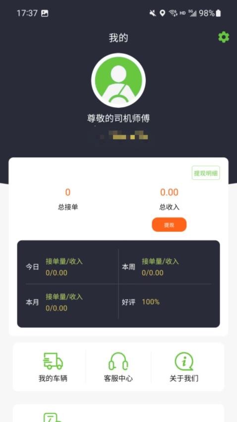 5.用戶可以在線對自己每天的總接單數和總收入金額進行查看。